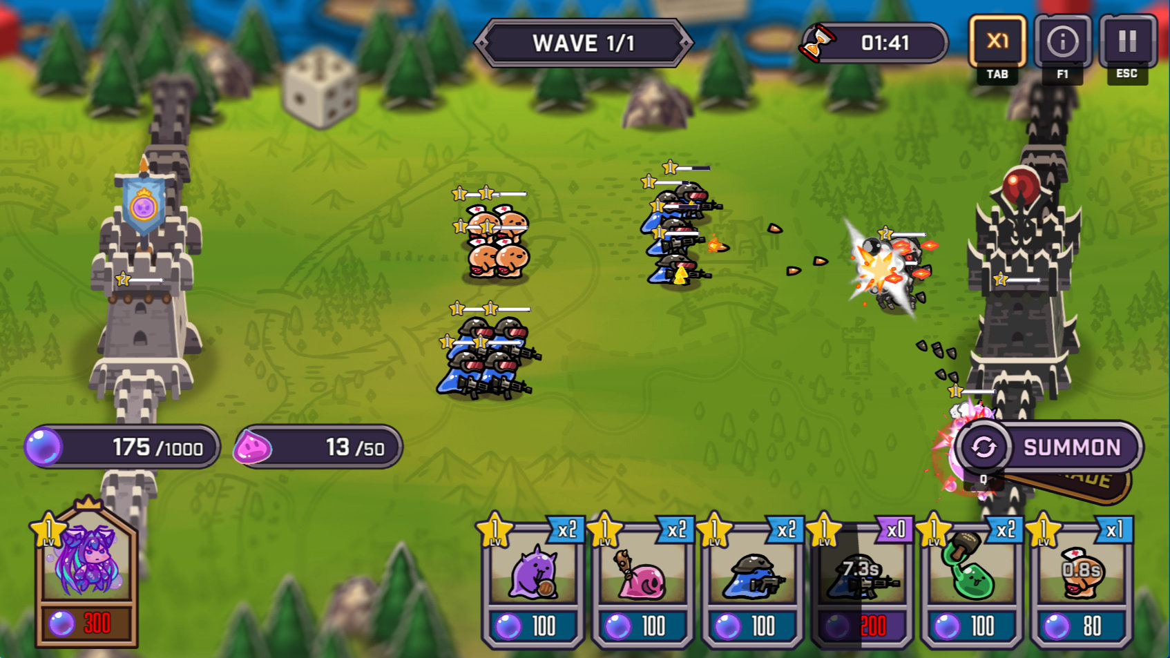両サイドの陣営からキャラを出すタワーディフェンス系のゲーム。