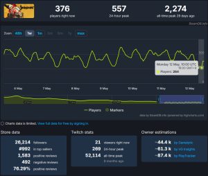 同時接続のピークが500台になってますがもうすぐ切りそう。