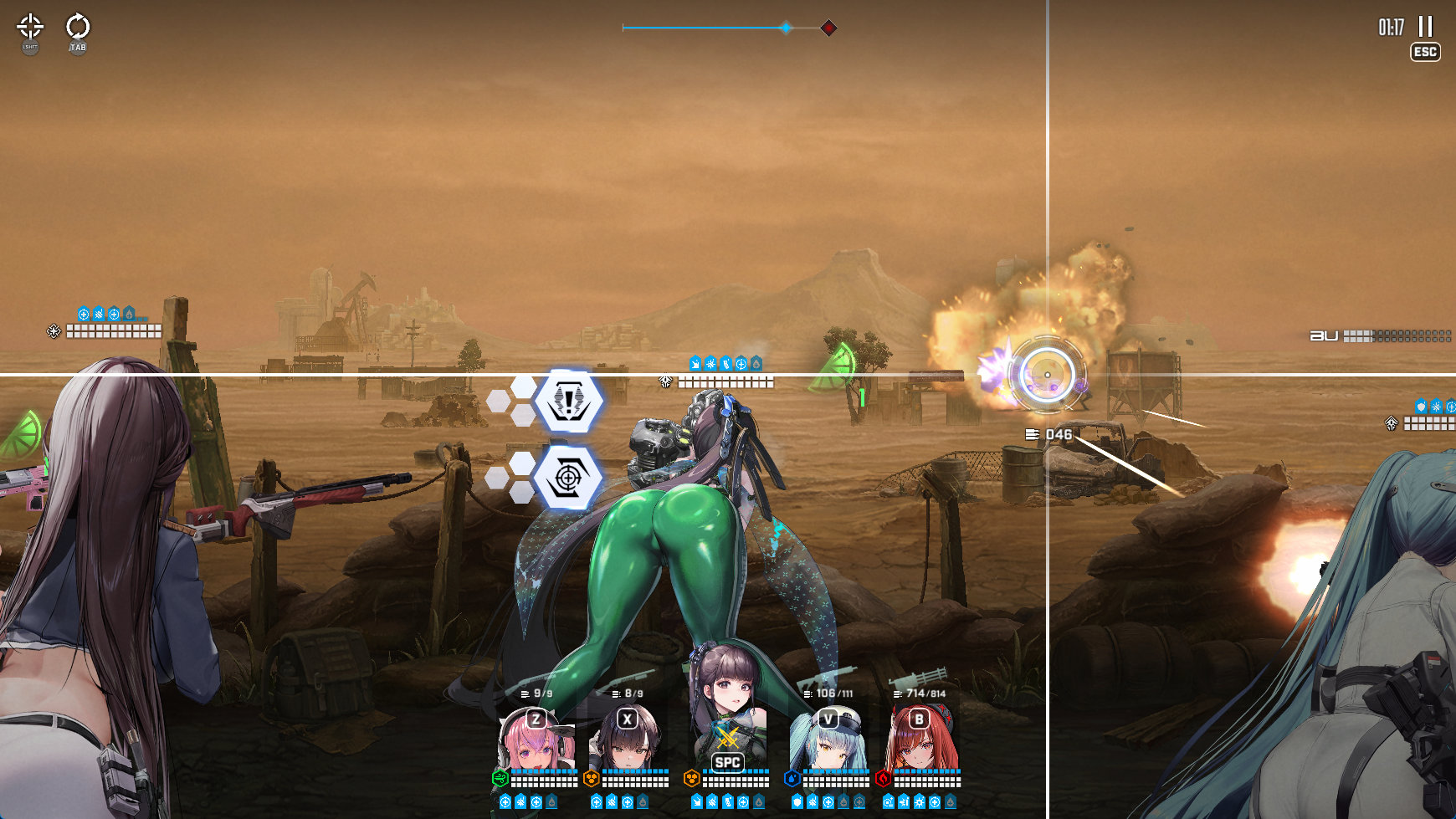 スキル1は持続ダメ、スキル2はパーツダメ、バーストは全体+持続ダメ。