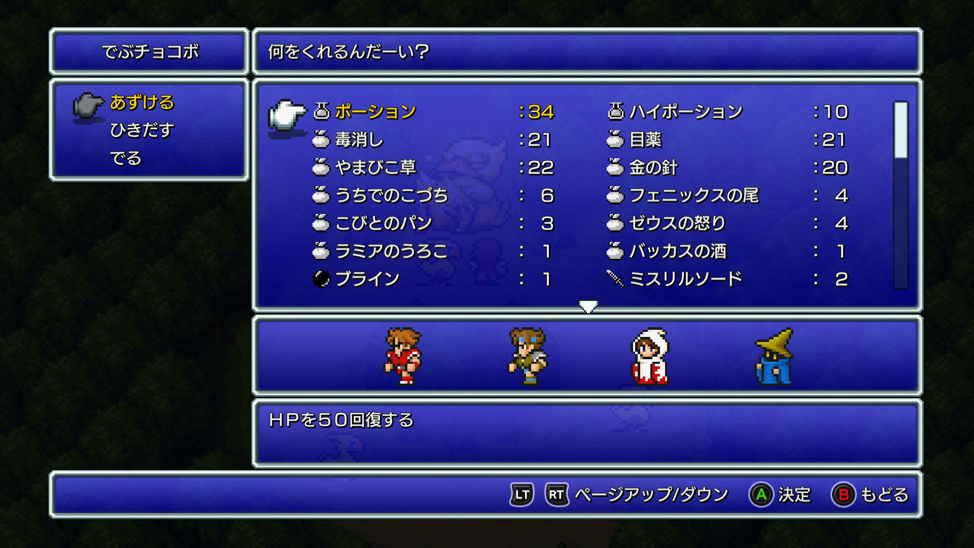 アイテムを多く持てたりソート機能のお陰でデブチョコボの需要ほぼなし。