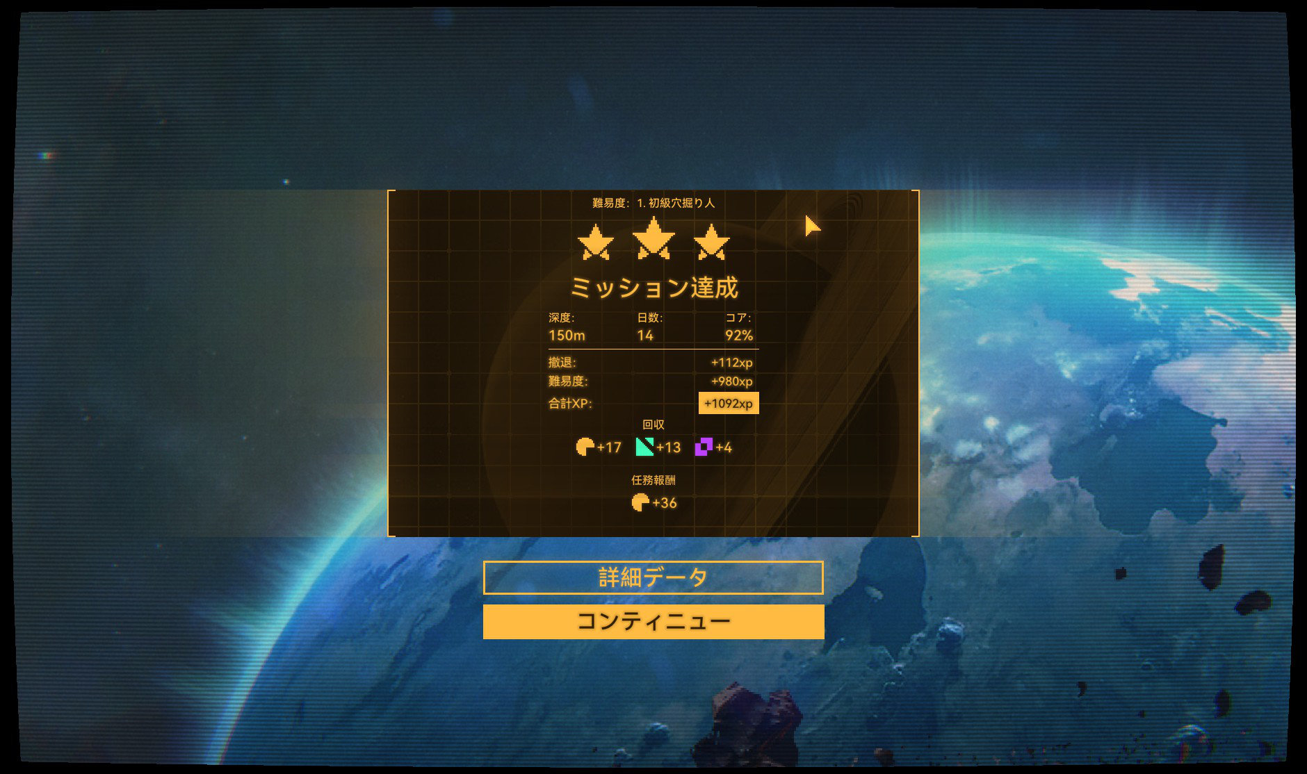 ミッションクリアは指定深度到達や鉱石を送ると撤退可能になり