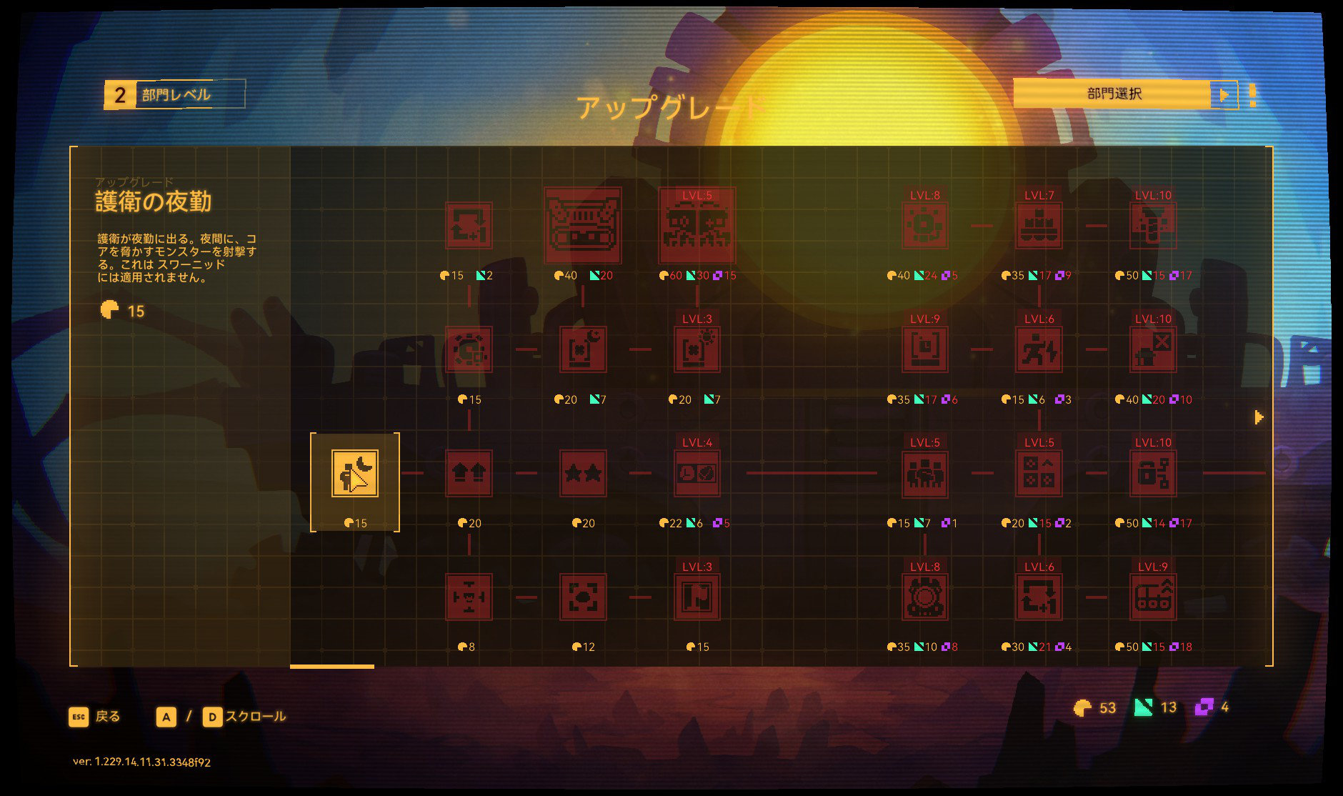 このレベルアップにより新しい施設のアンロックやアンロック権利が貰えます。
