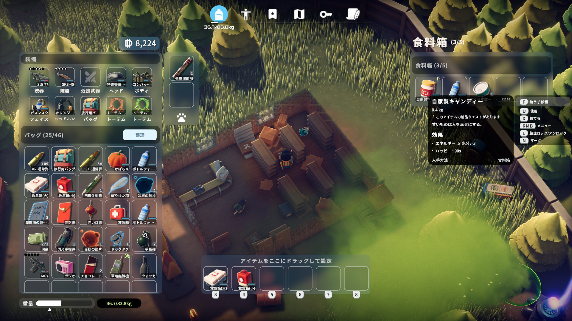 食べ物は食料箱、薬は医療箱から出やすいのでソレ目当てで探索ですねぇ。